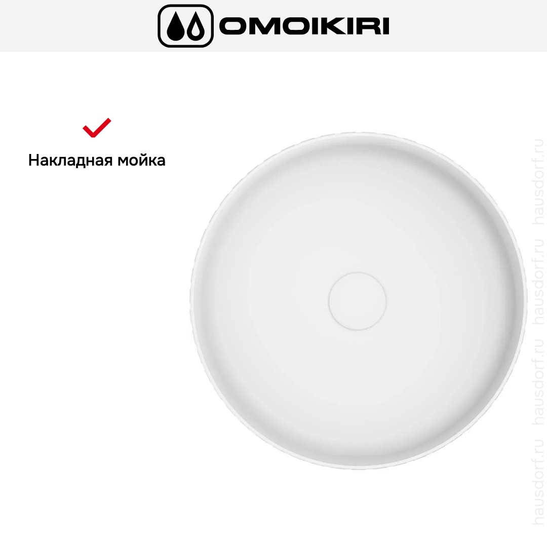 Накладная мойка Omoikiri — отличный выбор для тех, кто хочет создать гармоничное пространство с удобной сантехникой. простой в установке. Преимущество такой конструкции: легко подобрать практически к любой кухне и не придется демонтировать вместе с тумбой при ремонте или перестановке остальной мебели. Данная модель имеет скругленный контур, поэтому выбор тумбочки для нее потребует дополнительного внимания. Устанавливается над столешницей: это самый простой способ монтажа, зачастую с ним можно справиться даже без специалистов, главное — правильно рассчитать размеры ниши.