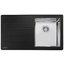 Сочетание нержавеющей стали и черного стекла подчеркивает функциональность и элегантность данной модели. Благодаря окисленному стеклу на рабочей поверхности не останутся следы от отпечатков пальцев. Увеличенный диаметр сливного отверстия позволяет быстрее спускать воду из мойки. Крыло имеет рельефную поверхность для стока воды, обеспечивая сухую дополнительную рабочую зону.