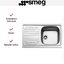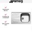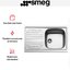 Smeg LYP791S — врезная прямоугольная мойка для установки над столешницей. Модель изготовлена из нержавеющей стали матовой текстуры толщиной 0,6 мм. Оснащена одной чашей глубиной 14 см и большим крылом слева. В комплект входит сифон с возможностью подключения посудомойки или стиральной машины.