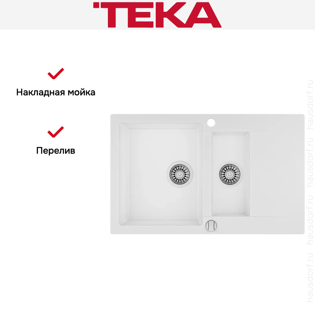Накладная мойка Teka — отличный выбор для тех, кто хочет создать гармоничное пространство с удобной сантехникой. простой в установке. Преимущество такой конструкции: легко подобрать практически к любой кухне и не придется демонтировать вместе с тумбой при ремонте или перестановке остальной мебели. Данная модель имеет стандартную форму, поэтому подходит большинству пользователей. Устанавливается над столешницей: это самый простой способ монтажа, зачастую с ним можно справиться даже без специалистов, главное — правильно рассчитать размеры ниши.
