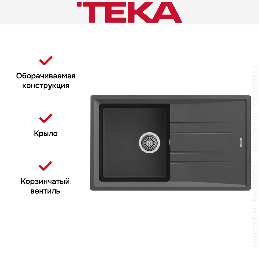 Обратите внимание на дизайнерские отличия мойки Тека, которые помогут в создании идеальной кухни в вашем доме. Она выполнена в цвете темно-серый. Крыло, расположенное слева или справа, является дополнительным рабочим пространством, на котором можно сушить посуду, разделывать мясо и нарезать овощи.