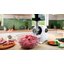 Стационарная мясорубка Bosch MFWS609W — продуманное сочетание компактности и функциональности для вашей кухни. Дизайн выполнен в белом цвете и сочетает пластик с элементами нержавеющей стали. Такое решение придаёт прибору современный вид и одновременно повышает износостойкость тех частей, которые контактируют с продуктами. Корпус небольших габаритов 24.5×20×24 см и масса около 4,1 кг упрощают хранение и перестановку. Прорезиненные ножки удерживают агрегат на месте во время работы и снижают вибрацию, а отсеки для насадок и шнура позволяют держать всё под рукой и поддерживать порядок на столе.