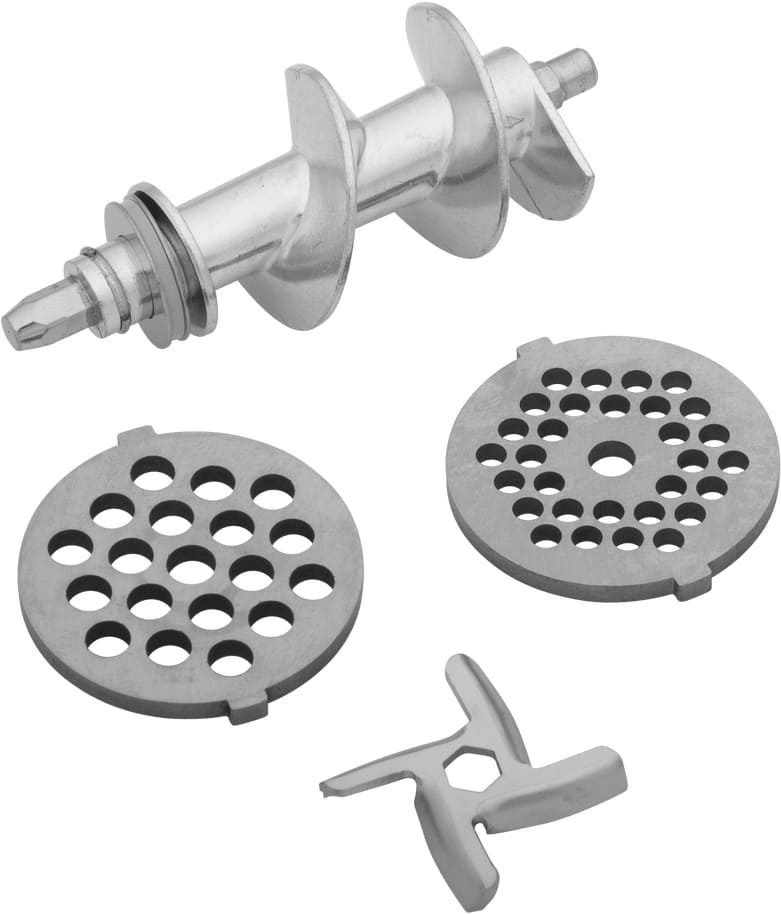 Набор насадок расширяет возможности: в комплекте четыре аксессуара, включая две перфорированные диска для тонкой и грубой крошки, насадку для колбас и приспособление для кеббе. Насадка для кеббе пригодится любителям ближневосточных и средиземноморских блюд, а диски обеспечивают гибкость текстур фарша. Система реверса помогает быстро ликвидировать зажимы и сменить направление вращения при необходимости, что экономит время и защищает механизм.