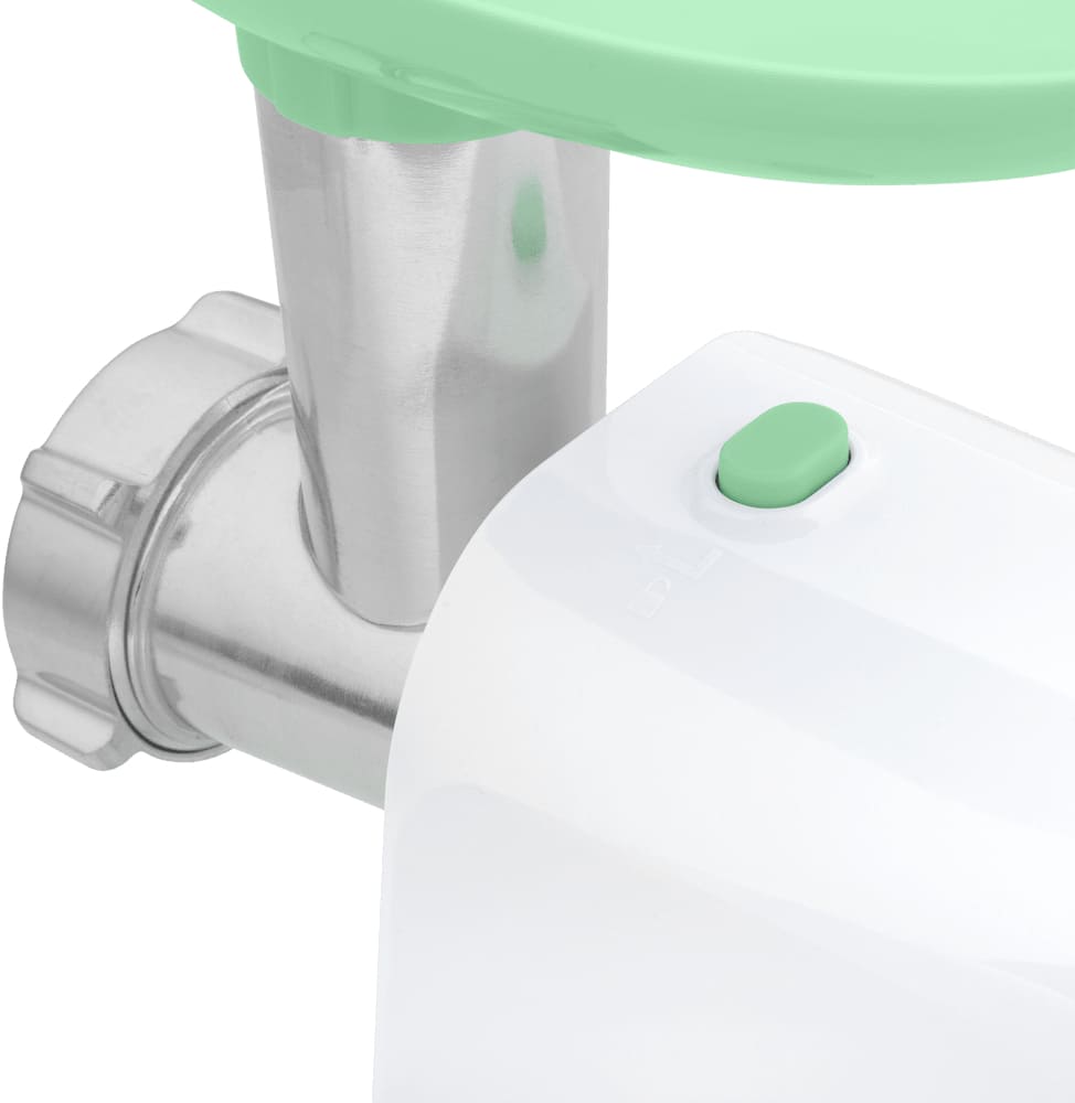 Несмотря на скромную мощность в 300 Вт, устройство справляется с мягким мясом, рыбой, овощами и другими податливыми ингредиентами, обеспечивая равномерное измельчение без перегрева. Корпус изготовлен из прочного пластика, что делает технику лёгкой и удобной в обращении. Яркий зелёный оттенок придаёт ей свежий, жизнерадостный вид и оживляет кухонное пространство, добавляя нотку индивидуальности даже в самый строгий интерьер.