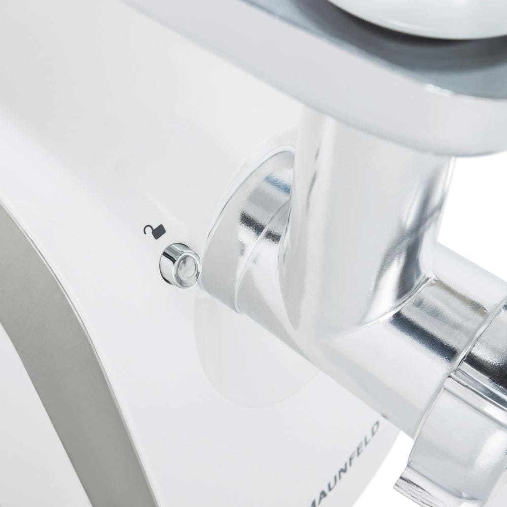 Мясорубка Maunfeld MMG.2000W — это сбалансированное сочетание мощности, компактности и практичности для современной кухни. Стационарная модель демонстрирует высокую производительность — до 2,6 килограмма в минуту, что делает её идеальной как для ежедневного приготовления фарша, так и для сезонных заготовок. Несмотря на корпус из прочного пластика, устройство обладает впечатляющей силой: при блокировке вала оно развивает мощность до 2000 Вт, обеспечивая стабильную работу даже с плотными или слегка замороженными кусками мяса.