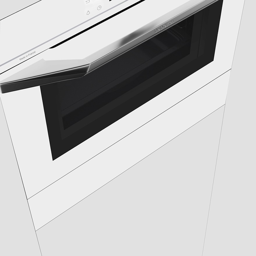 Дверца открывается нажатием на специальную область фронтальной панели — таким образом модель Де Дитрих отлично вписывается даже в современный бесшовный дизайн интерьера. Основной материал внутренней поверхности — нержавеющая сталь. Телескопические направляющие, идущие в комплекте, повышают комфорт и безопасность использования.