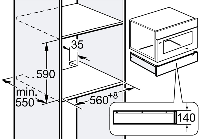 - Габариты ниши для встраивания (ВхШхГ): 14 х 56 х 55 см