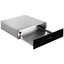 Подогреватель открывается нажатием на фронтальную панель — ящик выезжает на несколько сантиметров, полностью открыть камеру можно, потянув его до упора. Такой способ распространен в современной технике, благодаря этому вы можете собрать комплект из кухонных приборов без выпирающих ручек и создать «бесшовный» интерьер.