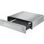 Встраиваемая модель высотой 13,6 см оснащена закрытой панелью управления с поворотным переключателем и кнопкой включения. Фасад имеет покрытие, предохраняющее от отпечатков пальцев. Максимальная нагрузка на подогреватель снаружи составляет 50 кг. В камеру можно загрузить до шести стандартных комплектов посуды, максимальный загрузочный вес достигает 15 кг. Защитное отключение обеспечивает безопасность при перегреве прибора или длительной работе. Устройство предназначено для подогрева чашек и тарелок. Регулировка температуры осуществляется в диапазоне от 30 до 80 °С.