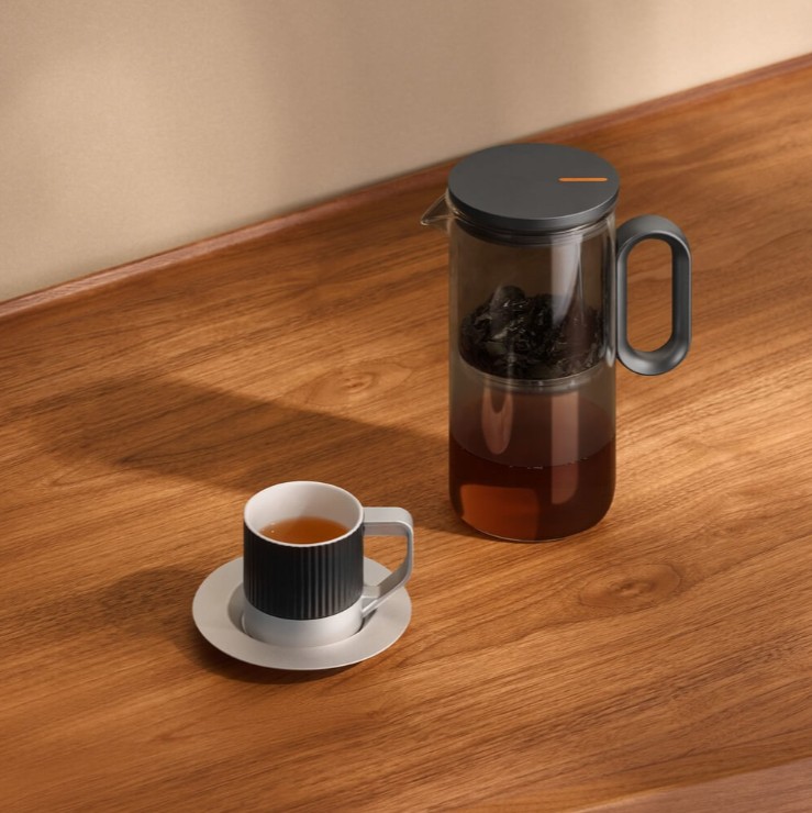 Магнитный механизм позволяет перелить напиток в отдельный резервуар чайника одним касанием: просто поверните крышку, чтобы оранжевая отметка совпала с центром ручки. Так вы можете контролировать степень насыщенности чая.
