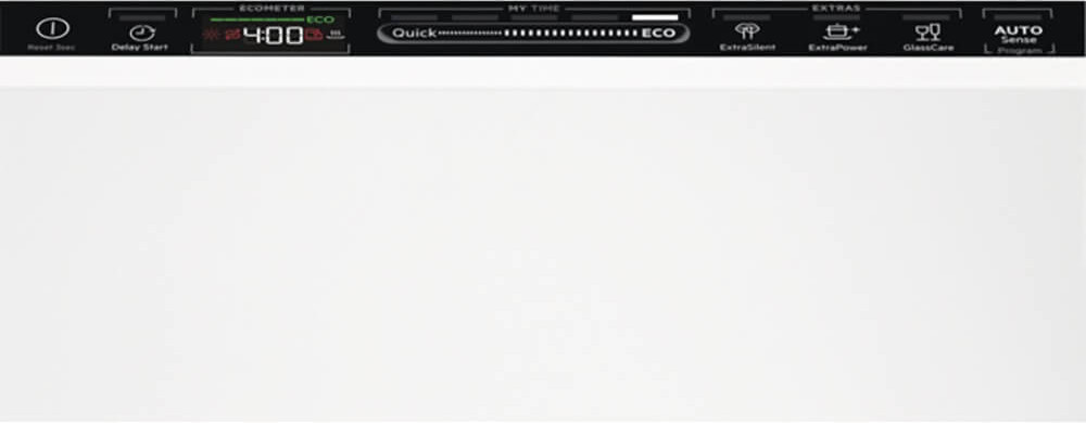 Инновационный способ задания параметров работы при помощи сенсорного слайдера QuickSelect позволяет выбирать продолжительность цикла, а значит, и требуемую программу мытья, просто проводя пальцем по сенсорной панели управления. Такая длительность может составить от 30 минут для короткой программы до 4 часов для интенсивной мойки. Для задания времени цикла можно также прикоснуться пальцем к соответствующему участку шкалы. При помощи слайдера осуществляется выбор типа посуды и контроль потребления воды и электроэнергии — его можно задать перед стартом программы. Сенсорные кнопки предназначаются и для установки дополнительных опций. Система не требует выбора температуры: большинство параметров выбирается автоматически.
