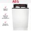 Посудомоечная машина AEG FSE72517P выполнена как полностью встраиваемая модель, которая прячется за фасадом кухни и сохраняет единый интерьер. Ее узкий корпус рассчитан на нишу 81.8×45×55 см, а габариты 81.8×44.6×55 см делают устройство отличным выбором для компактных кухонь. Передняя панель управления черного цвета остается скрытой под навесом фасада, поэтому дизайн выглядит сдержанно и аккуратно, а рабочая поверхность не нарушает общую стилистику.