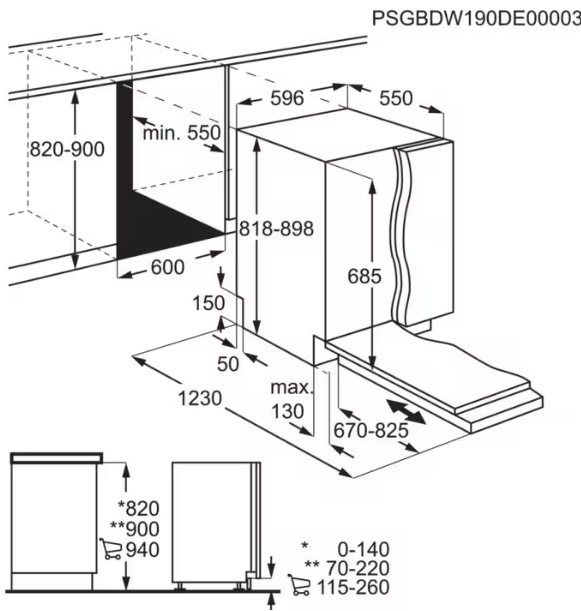 - Размеры ниши для встраивания (ВхШхГ): 81.8-90х60х55 см