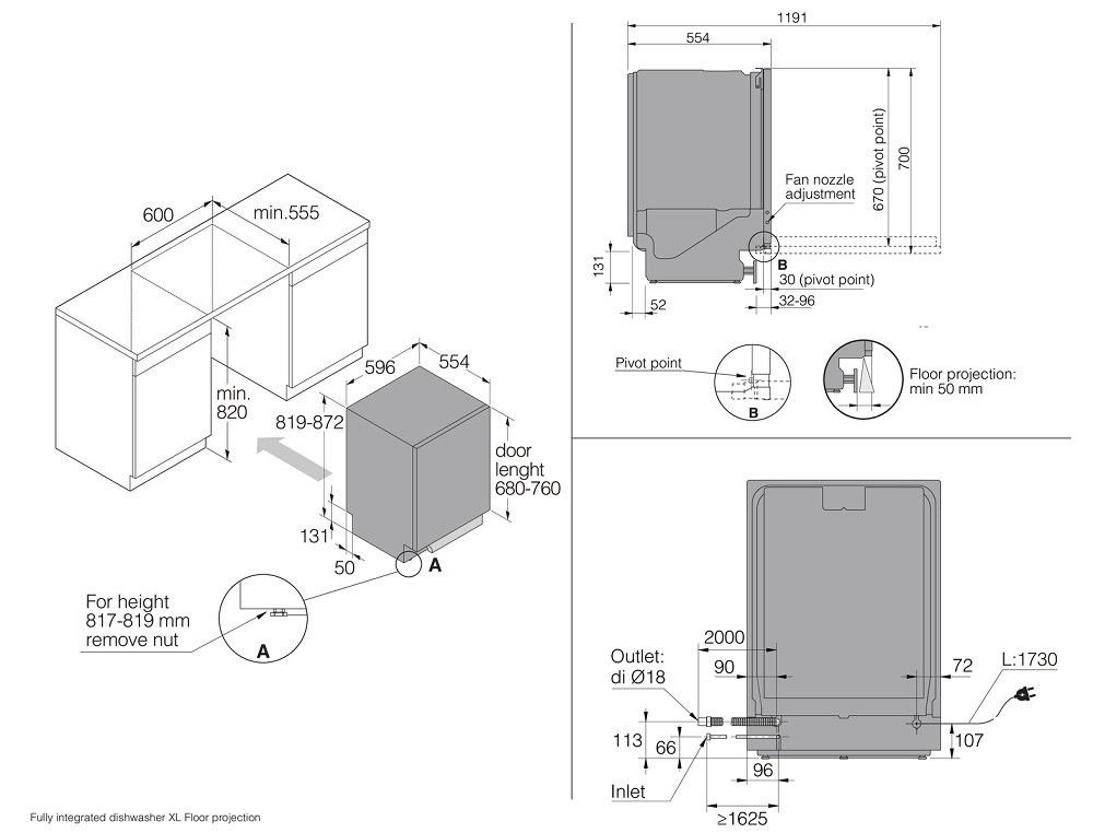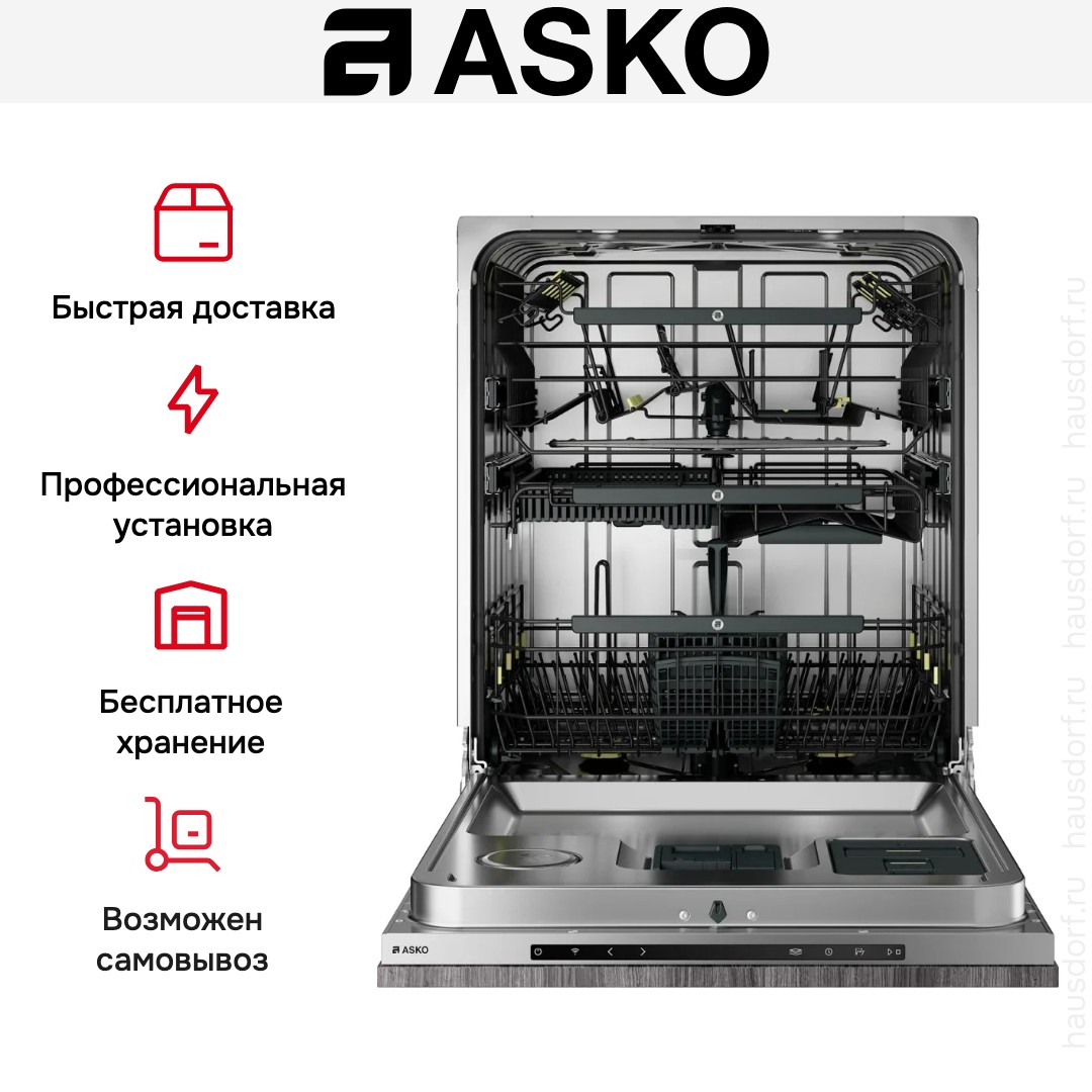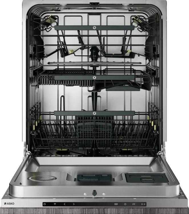 Посудомоечная машина ASKO DFI748MU. Встраиваемое решение полностью скрытого типа объединяет строгую эстетику и техническую изящность, оставляя переднюю панель под ваш кухонный фасад. Панель управления из нержавеющей стали аккуратно закрыта, а цвет корпуса легко подстраивается под навесной фасад. Тонкий TFT‑дисплей с сенсорным управлением делает интерфейс понятным и аккуратным, а функция Push‑to‑Open и автоматическое приоткрывание дверцы по окончании цикла добавляют удобства при эксплуатации. Габариты и требуемая ниша указаны точно, что упрощает монтаж и интеграцию в стандартные кухонные модули.