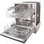 В другом варианте столовые приборы помещаются в съемную корзину, а для ножей предусматривается отдельная полочка. Большое количество ярко окрашенных складных элементов, стоек, держателей и полок позволяет разместить всю посуду компактно и в то же время обеспечить лучшее качество мойки. Система защиты стекла позволяет установить тонкие стаканы, фужеры и бокалы, защищая их от повреждений.