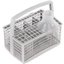 Корзина для столовых приборов — один из обязательных аксессуаров, которыми оснащается любая посудомоечная машина. Она представляет собой сетчатый пластиковый органайзер, в котором устанавливаются в вертикальном положении ложки, ножи и вилки. Корзина, как правило, разделяется на отдельные отсеки, в каждый из которых можно поместить один или несколько предметов. Зачастую сверху она закрывается специальной крышкой, которая также служит для разделения приборов, способствуя более тщательному их мытью.