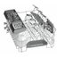 В другом варианте столовые приборы помещаются в съемную корзину, а для ножей предусматривается отдельная полочка. Большое количество ярко окрашенных складных элементов, стоек, держателей и полок позволяет разместить всю посуду компактно и в то же время обеспечить лучшее качество мойки. Система защиты стекла позволяет установить тонкие стаканы, фужеры и бокалы, защищая их от повреждений.