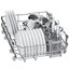 Корзина для столовых приборов достаточно высока, ввиду чего она устанавливается в нижнем коробе, где для нее предусматривается специальное место между разделителями для тарелок. Приборы в корзине могут размещаться как вниз, так и вверх рукоятками — это зависит от количества приборов и требований пользователя. Однако острые предметы — ножи или вилки — необходимо размещать острием вниз для предотвращения травм. Ножи рекомендуется размещать в корзинах с осторожностью, поскольку лезвия из керамики, например, могут затупиться. Чтобы избежать этого, следует использовать фирменные моющие средства и обязательно располагать ножи по отдельности, чтобы они не соприкасались с другими предметами.