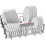 Верхняя корзина может регулироваться по высоте, так что при необходимости в нее можно поместить тарелки большего размера. Нижняя корзина позволяет установить вертикально большие суповые тарелки и блюда большого диаметра — для этого верхнюю корзину можно поднять выше. Тарелки обычно устанавливаются в откидные рамки-держатели, которые легко складываются на дно корзины. Всю посуду в нижней корзине рекомендуется устанавливать без соприкосновения предметов друг с другом, углублением к центру для более интенсивного воздействия струй воды на внутреннюю часть посуды.