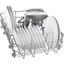 Встраиваемая модель Бош отлично впишется в любой интерьер, главное — правильно выбрать место, чтобы подвести коммуникации. Устанавливается в нишу целиком, полностью закрывается декоративной панелью. Обратите внимание: в комплекте не идет фасад, его необходимо установить самостоятельно. Имеет уменьшенную ширину — благодаря этому поместится даже на очень маленькой кухне. В камеру можно загрузить ограниченное число комплектов: 10 шт. Комплектом считается набор посуды на одного человека, который нужен для полноценного приема пищи: глубокая и плоская тарелки, тарелка для салата, блюдце под чашку, сама чашка, ложка и вилка.