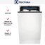 Встраиваемая модель Электролюкс отлично впишется в любой интерьер, главное — правильно выбрать место, чтобы подвести коммуникации. Устанавливается в нишу целиком, полностью закрывается декоративной панелью. Обратите внимание: в комплекте не идет фасад, его необходимо установить самостоятельно. Имеет уменьшенную ширину — благодаря этому поместится даже на очень маленькой кухне. В камеру можно загрузить ограниченное число комплектов: 10 шт. Комплектом считается набор посуды на одного человека, который нужен для полноценного приема пищи: глубокая и плоская тарелки, тарелка для салата, блюдце под чашку, сама чашка, ложка и вилка.