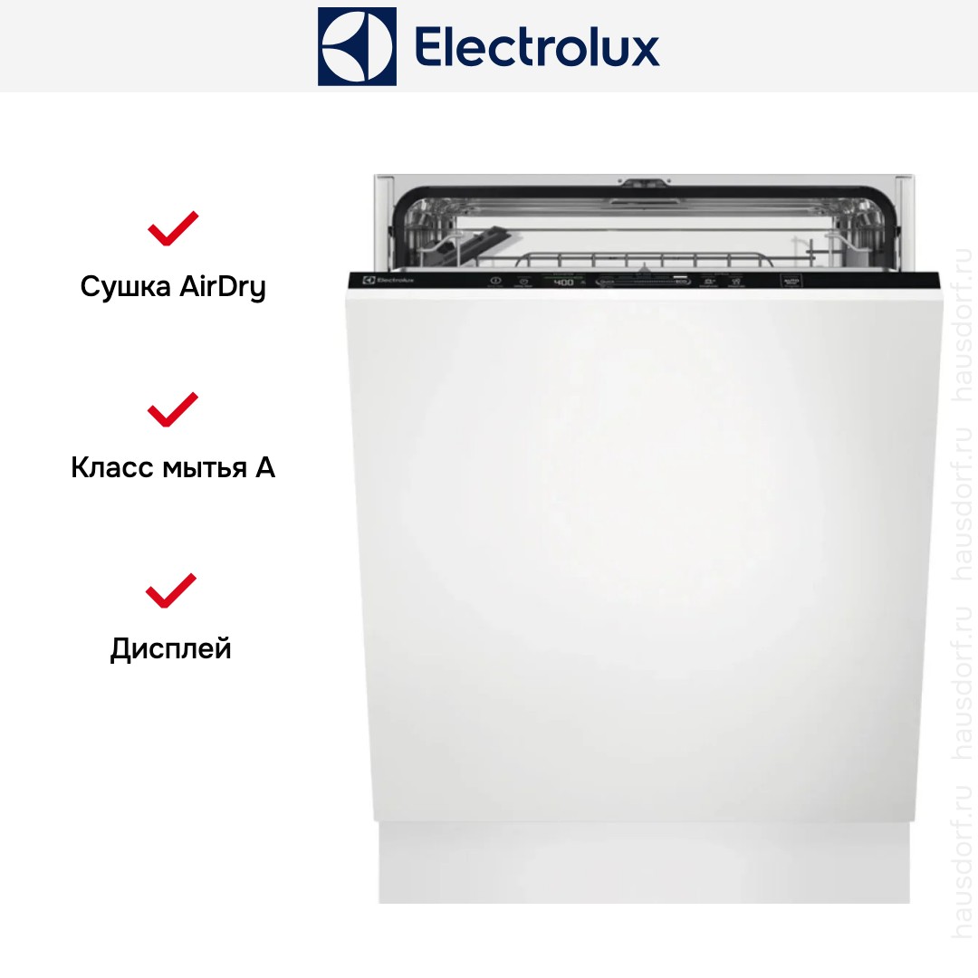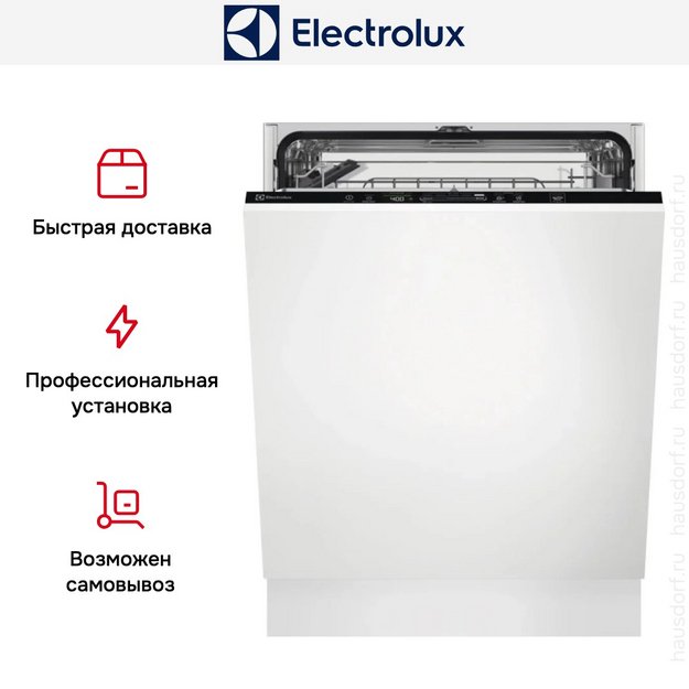 Встраиваемая модель Электролюкс отлично впишется в любой интерьер, главное — правильно выбрать место, чтобы подвести коммуникации. Устанавливается в нишу целиком, полностью закрывается декоративной панелью. Обратите внимание: в комплекте не идет фасад, его необходимо установить самостоятельно. Имеет стандартные размеры, поэтому может не поместиться на очень маленькой кухне. В камеру можно загрузить ограниченное число комплектов. Комплектом считается набор посуды на одного человека, который нужен для полноценного приема пищи: глубокая и плоская тарелки, тарелка для салата, блюдце под чашку, сама чашка, ложка и вилка.