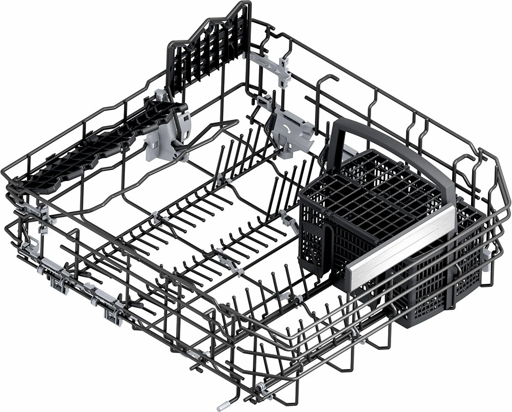 Корзина для столовых приборов — один из обязательных аксессуаров, которыми оснащается любая посудомоечная машина. Она представляет собой сетчатый пластиковый органайзер, в котором устанавливаются в вертикальном положении ложки, ножи и вилки. Корзина, как правило, разделяется на отдельные отсеки, в каждый из которых можно поместить один или несколько предметов. Зачастую сверху она закрывается специальной крышкой, которая также служит для разделения приборов, способствуя более тщательному их мытью.