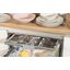 Как правило, полки для столовых приборов находятся в верхней корзине — таким образом, чтобы под ними можно было расположить, например, небольшие чашки. Часто полки оснащаются специальными разделителями, которые позволяют зафиксировать любой предмет, чтобы он не мог случайно сдвинуться с перекрыть доступ к соседним. В ряде моделей для столовых приборов предусматриваются большие полки, которые размещаются на третьем уровне. Такая конструкция считается оптимальной, так как освобождается место в корзинах для более крупных предметов. Такие полки достигают в высоту 5 см, так что на них можно размещать не только обычные ножи, ложки или вилки, но и более объемные половники, шумовки, лопатки, терки и другую подобную утварь.