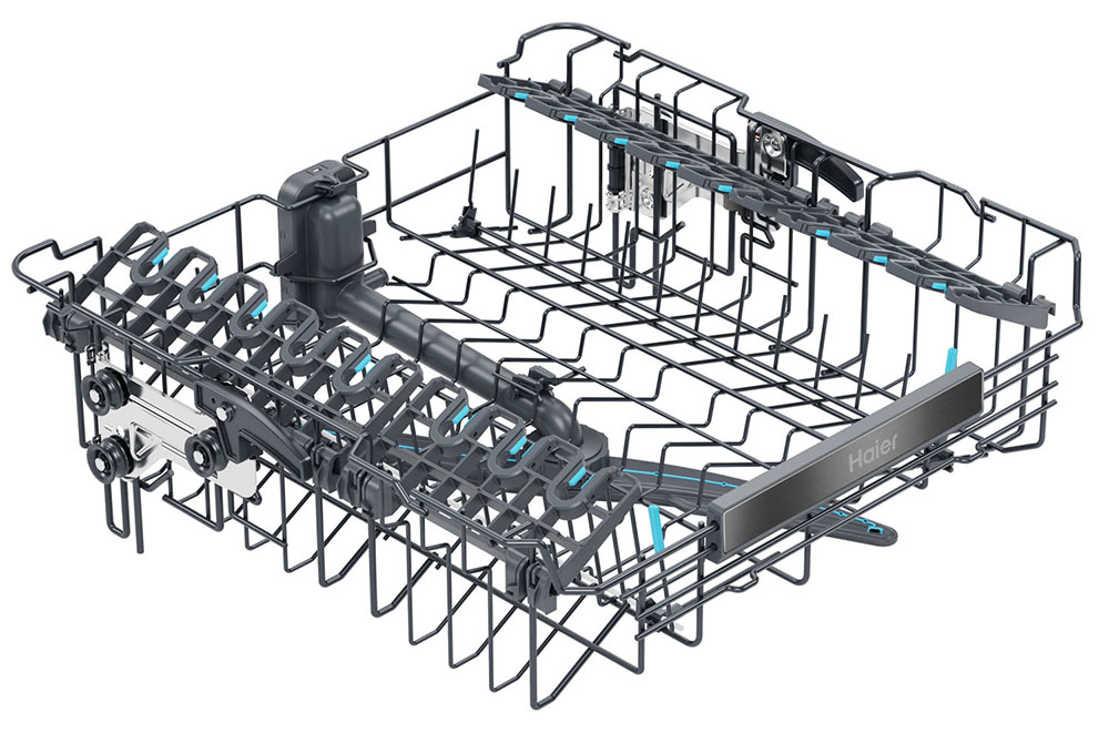 Встраиваемая модель Хайер отлично впишется в любой интерьер, главное — правильно выбрать место, чтобы подвести коммуникации. Устанавливается в нишу целиком, полностью закрывается декоративной панелью. Имеет стандартные размеры, поэтому может не поместиться на очень маленькой кухне. В камеру можно загрузить ограниченное число комплектов: 16 шт. Комплектом считается набор посуды на одного человека, который нужен для полноценного приема пищи: глубокая и плоская тарелки, тарелка для салата, блюдце под чашку, сама чашка, ложка и вилка.