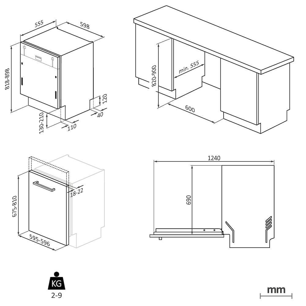 Большая часть полноразмерных и узких посудомоек встраиваемого и отдельностоящего вида имеет высоту около 82-85 см: такие модели легко размещаются под столешницей. Встраиваемые модели несколько ниже, так как у них отсутствует верхняя крышка.