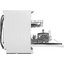 Корзины продуманы для удобства: регулируемая по высоте верхняя корзина позволяет разместить высокие бокалы или кастрюли. Есть отдельная корзина для столовых приборов и направляющие для тарелок в обеих корзинах, что упрощает загрузку и улучшает циркуляцию воды. В комплекте идут воронка для засыпания соли и держатель шланга, чтобы монтаж и обслуживание проходили быстрее.
