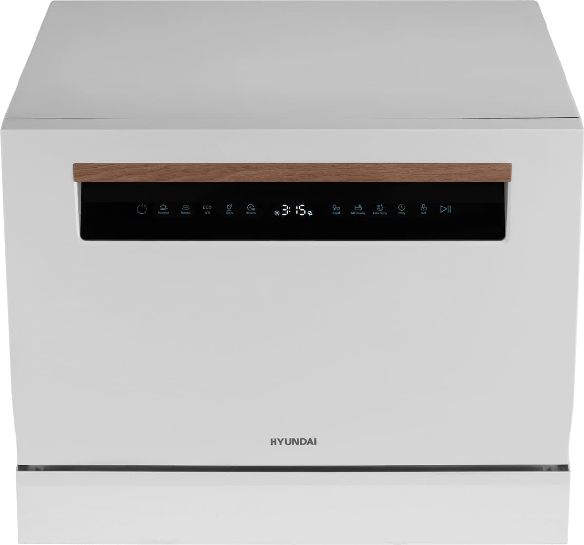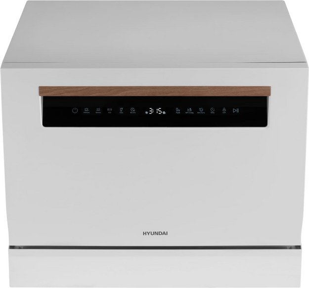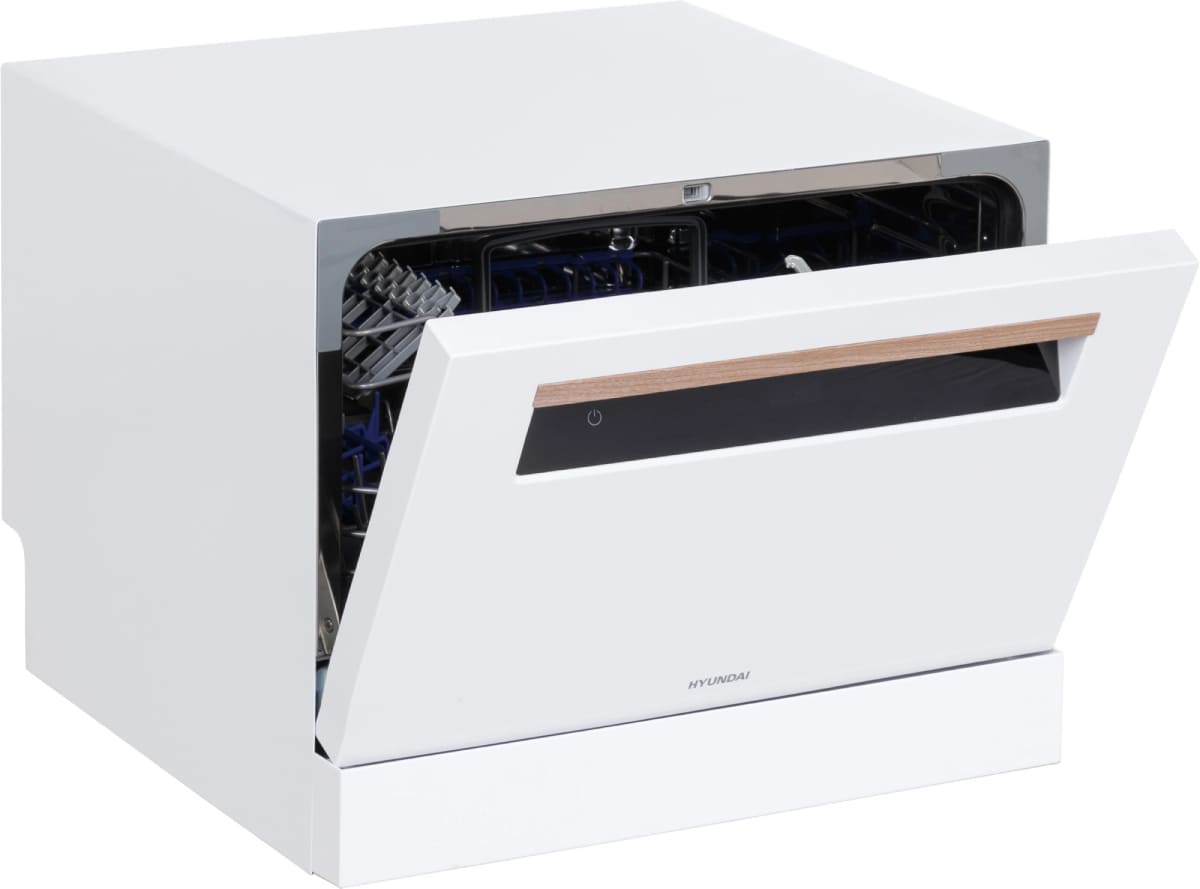 Отдельностоящая модель Хендай отлично впишется в кухонный интерьер, главное — правильно выбрать место, чтобы подвести коммуникации. Компактные размеры позволяют разместить ее даже на очень маленькой кухне. В камеру можно загрузить ограниченное число комплектов: 6 шт. Комплектом считается набор посуды на одного человека, который нужен для полноценного приема пищи: глубокая и плоская тарелки, тарелка для салата, блюдце под чашку, сама чашка, ложка и вилка.