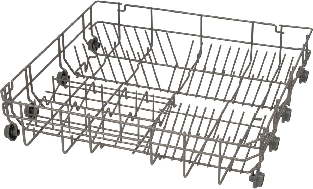 Верхняя корзина может регулироваться по высоте, так что при необходимости в нее можно поместить тарелки большего размера. Нижняя корзина позволяет установить вертикально большие суповые тарелки и блюда большого диаметра — для этого верхнюю корзину можно поднять выше. Тарелки обычно устанавливаются в откидные рамки-держатели, которые легко складываются на дно корзины. Всю посуду в нижней корзине рекомендуется устанавливать без соприкосновения предметов друг с другом, углублением к центру для более интенсивного воздействия струй воды на внутреннюю часть посуды.