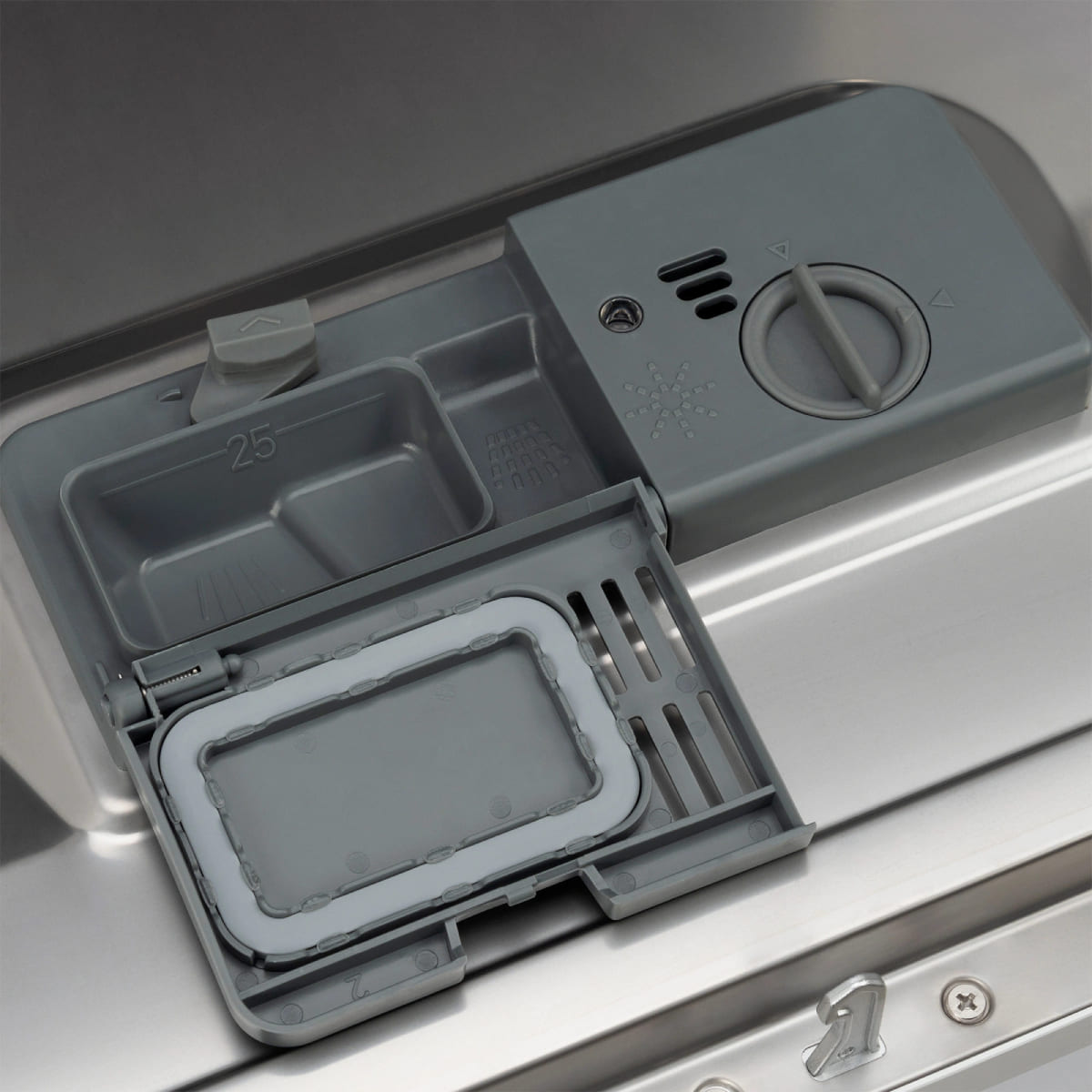 Для высококачественного мытья требуются три компонента. Порошок служит для удаления загрязнений, оставшихся на посуде. Соль нейтрализует примеси, содержащиеся в водопроводной воде, и позволяет избавиться от накипи и известковых отложений на посуде и внутренней поверхности камеры. И, наконец, ополаскиватель позволяет уменьшить поверхностное натяжение воды при помощи специальных составляющих — тензидов, которые облегчают скатывание капель воды. Он способствует удалению остатков порошка и соли, придает посуде ослепительный блеск, и в конечном счете обеспечивает лучшее и быстрое высыхание, а также отсутствие разводов и потеков на ее поверхности.
