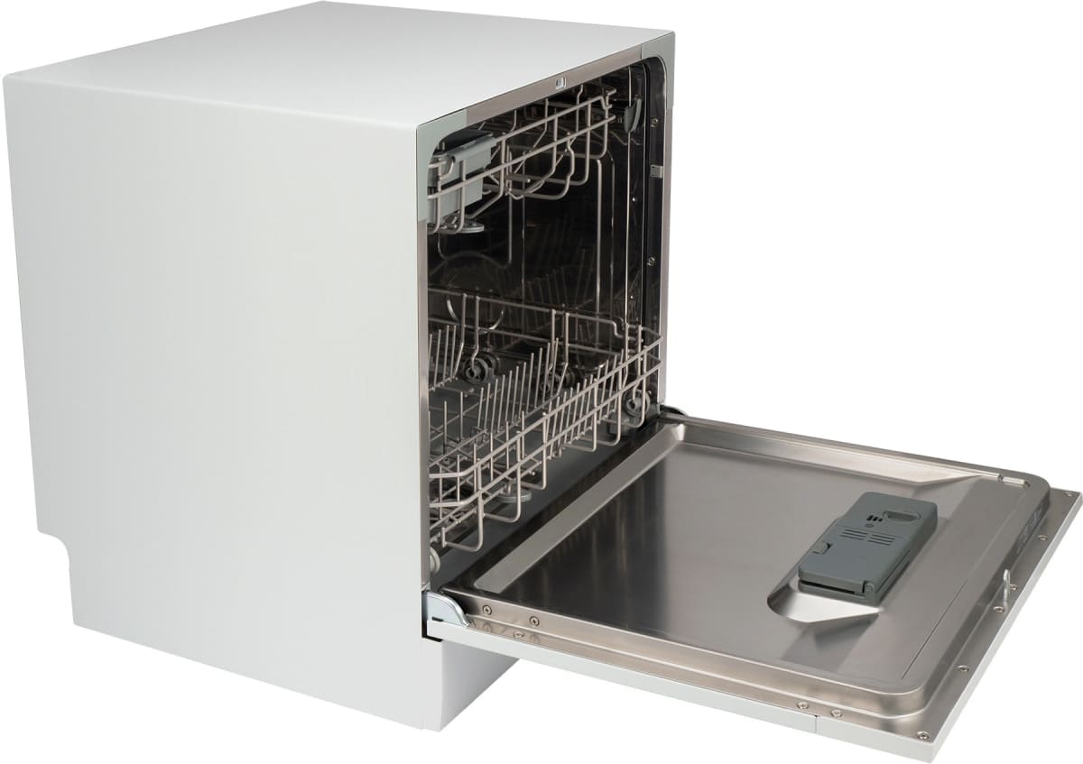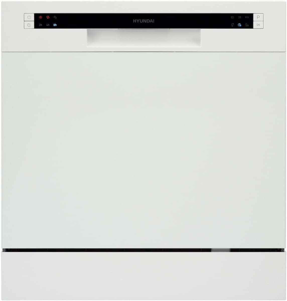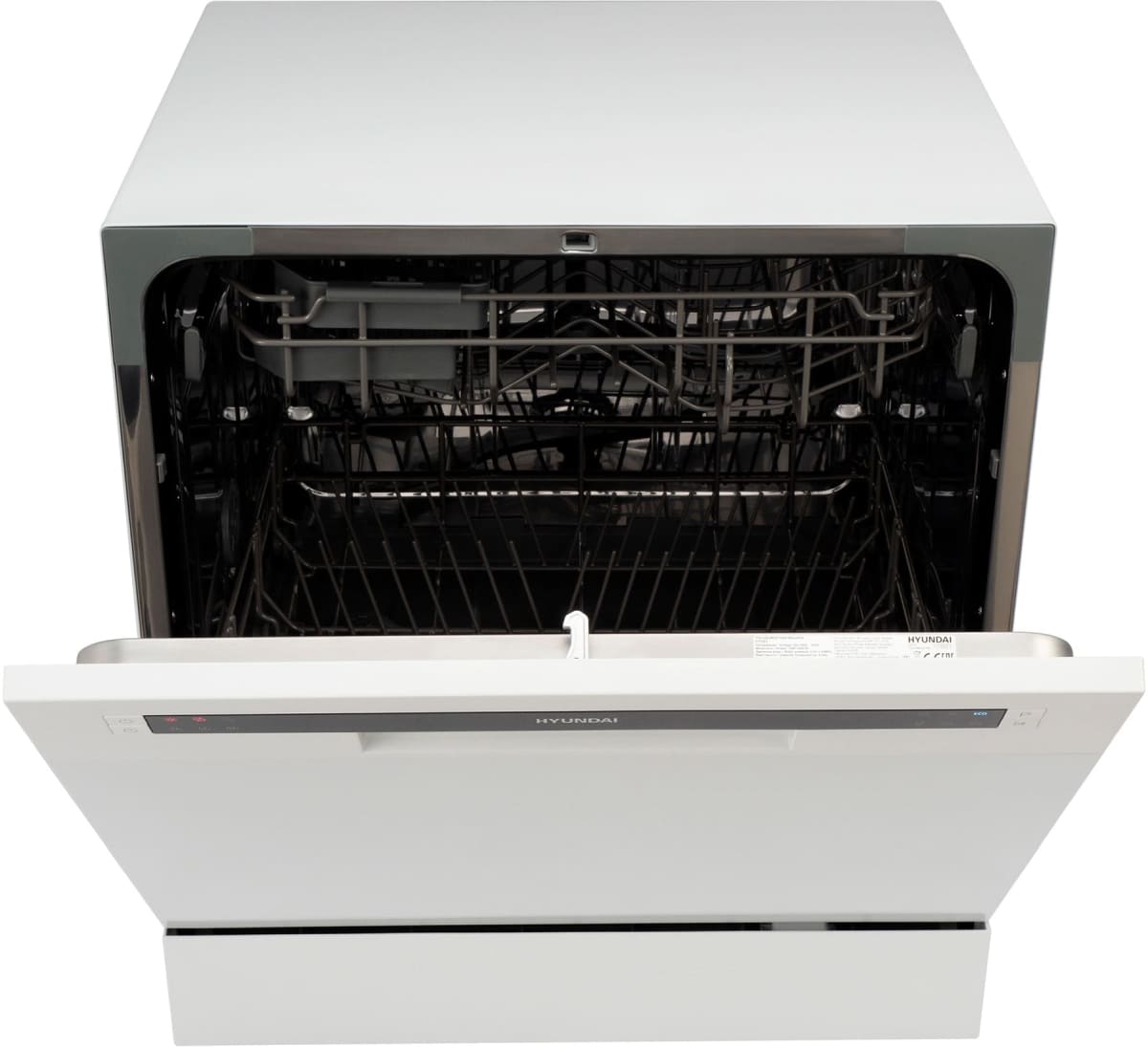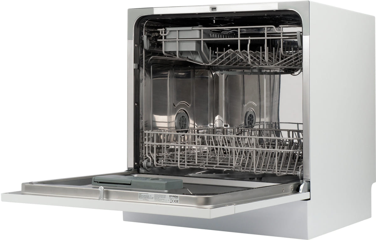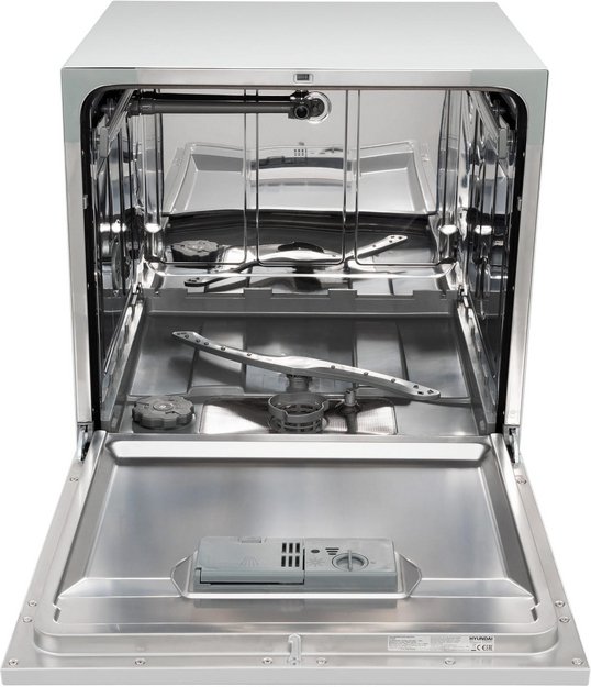 Отдельностоящая модель Хендай отлично впишется в кухонный интерьер, главное — правильно выбрать место, чтобы подвести коммуникации. Компактные размеры позволяют разместить ее даже на очень маленькой кухне. В камеру можно загрузить ограниченное число комплектов: 8 шт. Комплектом считается набор посуды на одного человека, который нужен для полноценного приема пищи: глубокая и плоская тарелки, тарелка для салата, блюдце под чашку, сама чашка, ложка и вилка.