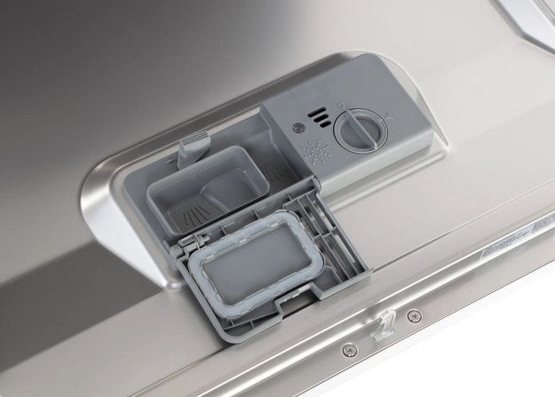 Запас нужно постоянно пополнять, добавляя ее в специальный отсек — расход при этом определяется степенью жесткости. Если индикатор наличия соли не светится, значит, ее достаточно для нормальной работы. Если индикатор начинает мигать, это означает, что средство уже заканчивается. А если индикатор горит, не выключаясь, заполнить соответствующий отсек требуется как можно скорее.