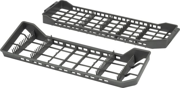 Как правило, полки для столовых приборов находятся в верхней корзине — таким образом, чтобы под ними можно было расположить, например, небольшие чашки. Часто полки оснащаются специальными разделителями, которые позволяют зафиксировать любой предмет, чтобы он не мог случайно сдвинуться с перекрыть доступ к соседним. В ряде моделей для столовых приборов предусматриваются большие полки, которые размещаются на третьем уровне. Такая конструкция считается оптимальной, так как освобождается место в корзинах для более крупных предметов. Такие полки достигают в высоту 5 см, так что на них можно размещать не только обычные ножи, ложки или вилки, но и более объемные половники, шумовки, лопатки, терки и другую подобную утварь.