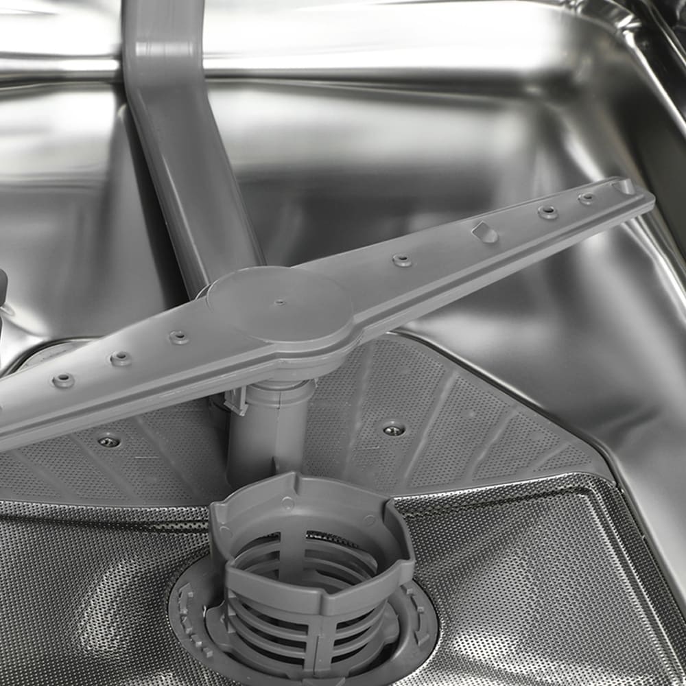 Как известно, принцип работы посудомоечной машины состоит в том, что на посуду в корзинах воздействуют сильные струи воды, которые подаются сквозь специальные форсунки во вращающихся разбрызгивателях-коромыслах. Класс мытья определяется, исходя из количества разбрызгивателей и форсунок, а также их диаметра — чем больше отверстий и чем меньше их диаметр, тем выше класс. Имеет значение также и расположение отверстий, так как струи воды не должны пересекаться — это мешает точности попадания в нужные места, а значит, и эффективности мытья. Кроме того, в камере не должно оставаться «слепых» зон, куда вода попадать не будет.