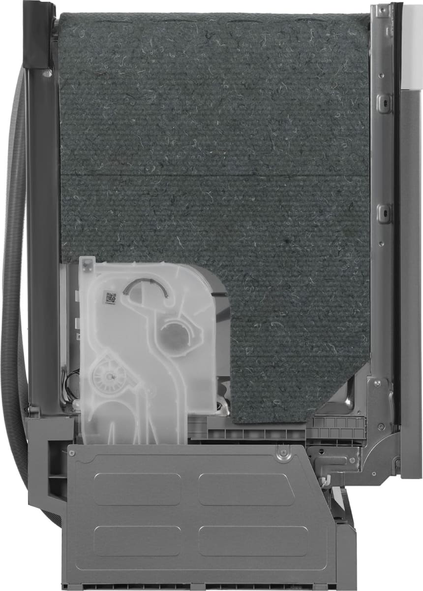 Скрытый нагревательный элемент обычно располагается под дном рабочей камеры. По сравнению с открытым, напрямую соприкасающимся с водой, он имеет целый ряд преимуществ. Прежде всего отсутствие контакта с водой означает отсутствие накипи, которая появляется на открытом ТЭНе ввиду того, что водопроводная вода содержит большое количество различных примесей. Возникновение накипи зачастую сопровождается появлением неприятного запаха. Кроме того, при закрытом нагревательном элементе можно не опасаться за сохранность видов посуды — например, из пластика. Альтернативой нагревательному элементу является возможность подключения посудомойки к горячей воде.