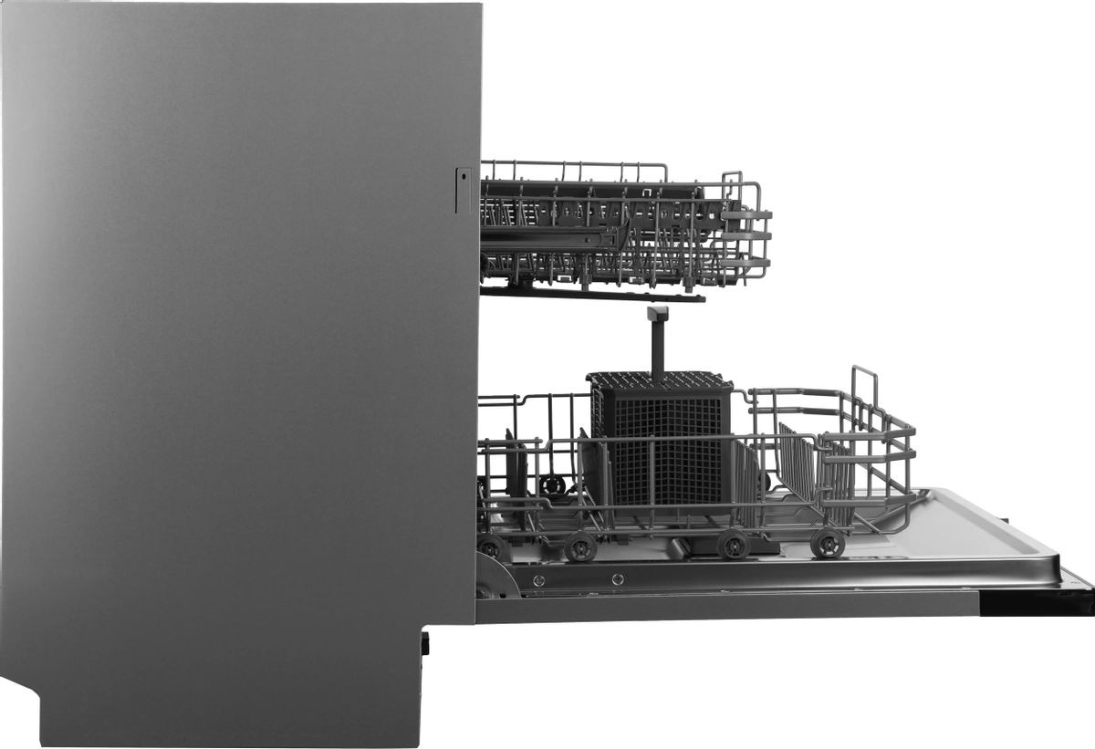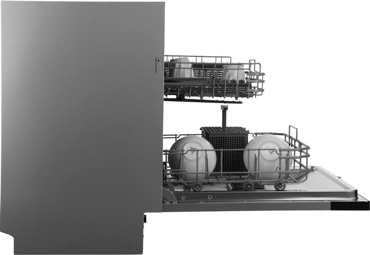 Внутренняя компоновка рассчитана на 13 комплектов посуды, что делает устройство удобным для семьи из трех-четырех человек. Две корзины с возможностью регулировки по высоте помогают разместить высокий кастрюльный посуд, тарелки разного диаметра и хрупкую посуду. Корзина для столовых приборов упрощает сортировку приборов и ускоряет укладку перед запуском программы. Инверторный мотор сокращает вибрации и уровень шума, продлевает срок службы узлов и снижает энергозатраты в процессе моечной программы.