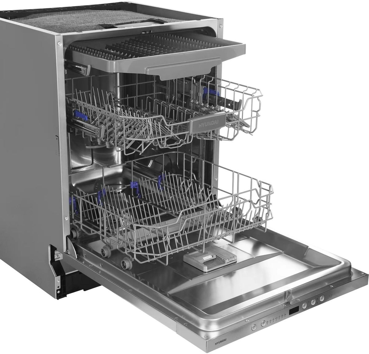 Посудомоечная машина Hyundai HBD-674 — это полностью встраиваемое решение для кухни, которое аккуратно прячется под вашим фасадом и сохраняет единый интерьерный стиль. Внешняя панель управления выполнена в серебристом цвете и гармонично сочетается с любыми элементами кухонного гарнитура. Жесткое крепление фасада обеспечивает надежную фиксацию декоративной панели, а компактные габариты 81.5×59.8×55 см позволяют установить прибор в стандартную нишу размером 82×60×58 см. Вес устройства в 35 кг облегчает монтаж и уменьшает нагрузку на конструкцию мебели.