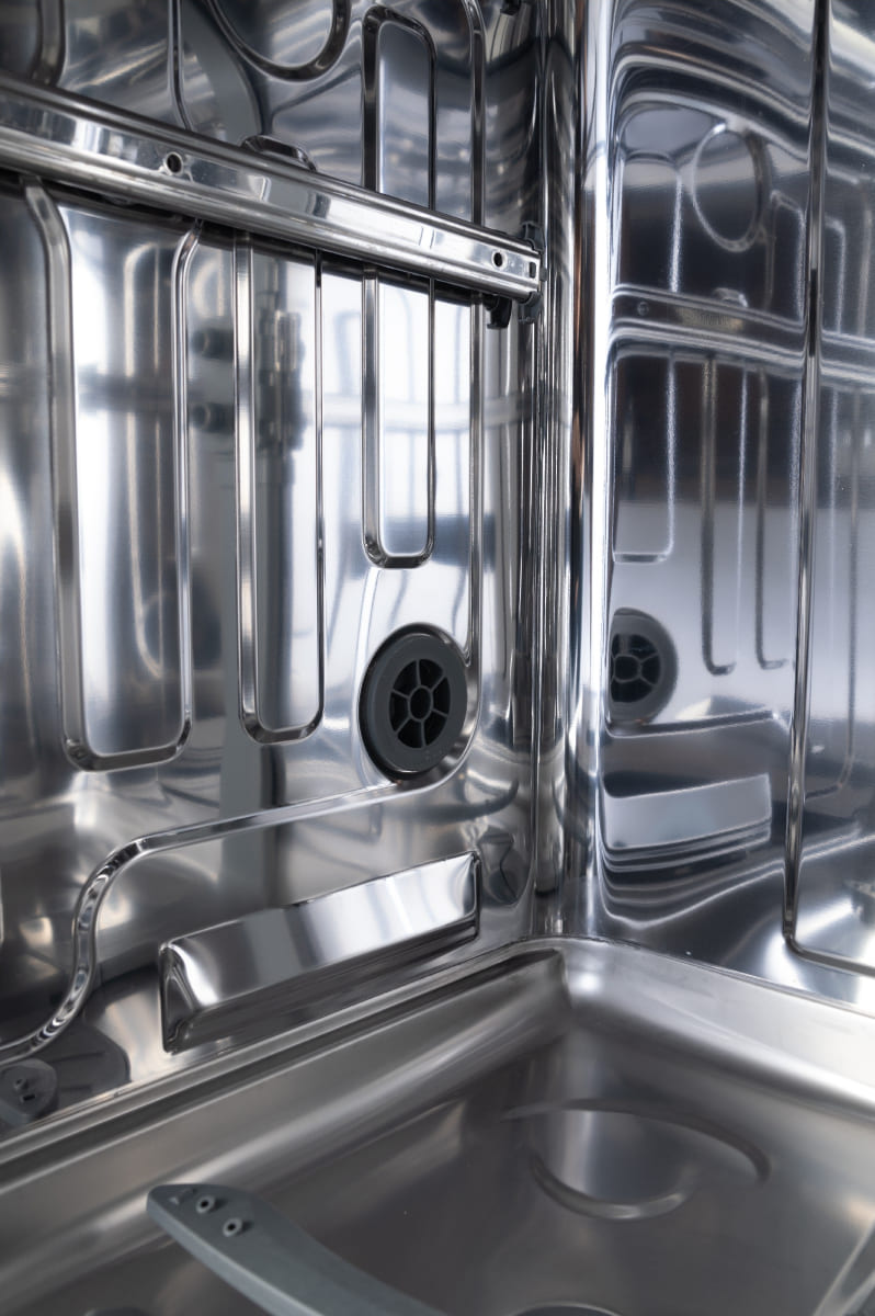 Внутренняя камера посудомоечной машины из нержавеющей стали способствует длительной успешной эксплуатации прибора. Нержавеющая сталь — один из самых распространенных материалов, которые применяются в производстве бытовой техники для кухни. Она обладает рядом уникальных качеств — в частности, сталь практически не подвержена коррозии, отличается высокой стойкостью к температурным, механическим и химическим воздействиям.