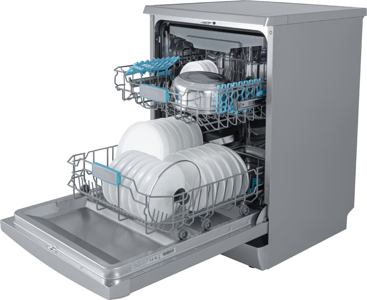 Отдельностоящая модель Кертинг отлично впишется в кухонный интерьер, главное — правильно выбрать место, чтобы подвести коммуникации. Имеет стандартные размеры, поэтому может не поместиться на очень маленькой кухне. В камеру можно загрузить ограниченное число комплектов: 14 шт. Комплектом считается набор посуды на одного человека, который нужен для полноценного приема пищи: глубокая и плоская тарелки, тарелка для салата, блюдце под чашку, сама чашка, ложка и вилка.