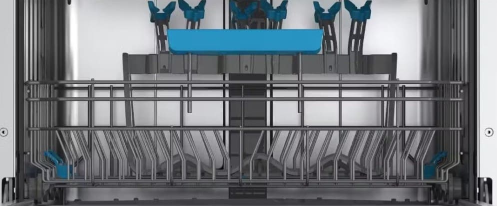 Он представляет собой вращающееся коромысло с отверстиями-форсунками для подачи воды и чаще всего устанавливается в узких посудомойках шириной 45 см и глубиной около 60 см. Это вызвано тем, что одного нижнего разбрызгивателя зачастую не хватает для охвата труднодоступных участков, так как этот разбрызгиватель совершает круговое вращение, а сечение рабочей камеры представляет собой прямоугольник. Чем больше форсунок для подачи воды будет располагаться сверху, тем лучше будет качество мытья, однако сама посудомойка будет иметь более высокую стоимость.