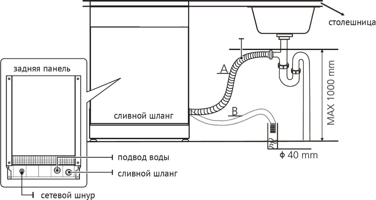 Глубина посудомоечной машины влияет не только на возможность ее встраивания в мебельный гарнитур или выборе места расположения. От нее зависит, насколько качественным будет подключение устройства к системе водопровода и канализации, как будут располагаться шланги, насколько удобным будет доступ к ним в случае чрезвычайных ситуаций.