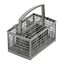 Корзина для столовых приборов — один из обязательных аксессуаров, которыми оснащается любая посудомоечная машина. Она представляет собой сетчатый пластиковый органайзер, в котором устанавливаются в вертикальном положении ложки, ножи и вилки. Корзина, как правило, разделяется на отдельные отсеки, в каждый из которых можно поместить один или несколько предметов. Зачастую сверху она закрывается специальной крышкой, которая также служит для разделения приборов, способствуя более тщательному их мытью.