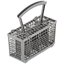 Корзина для столовых приборов — один из обязательных аксессуаров, которыми оснащается любая посудомоечная машина. Она представляет собой сетчатый пластиковый органайзер, в котором устанавливаются в вертикальном положении ложки, ножи и вилки. Корзина, как правило, разделяется на отдельные отсеки, в каждый из которых можно поместить один или несколько предметов. Зачастую сверху она закрывается специальной крышкой, которая также служит для разделения приборов, способствуя более тщательному их мытью.
