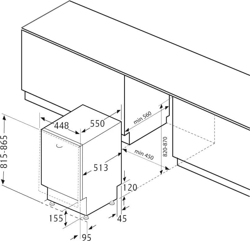 Большая часть полноразмерных и узких посудомоек встраиваемого и отдельностоящего вида имеет высоту около 82-85 см: такие модели легко размещаются под столешницей. Встраиваемые модели несколько ниже, так как у них отсутствует верхняя крышка.