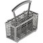 Корзина для столовых приборов — один из обязательных аксессуаров, которыми оснащается любая посудомоечная машина. Она представляет собой сетчатый пластиковый органайзер, в котором устанавливаются в вертикальном положении ложки, ножи и вилки. Корзина, как правило, разделяется на отдельные отсеки, в каждый из которых можно поместить один или несколько предметов. Зачастую сверху она закрывается специальной крышкой, которая также служит для разделения приборов, способствуя более тщательному их мытью.