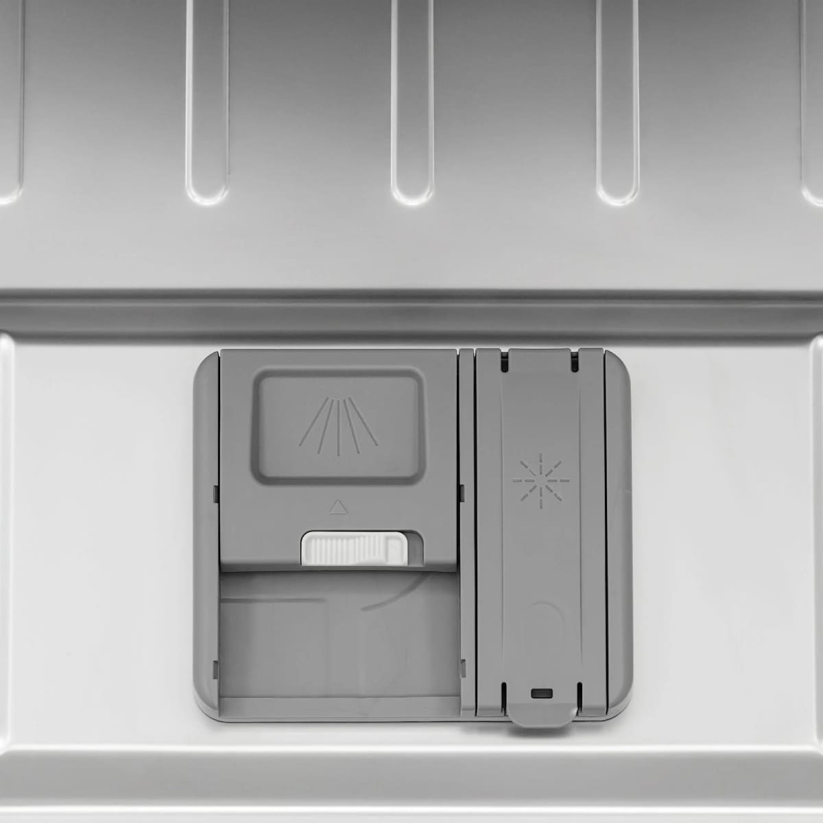 Режим сушки облегчает последующий уход за посудой, предотвращает подтеки на стенках тарелок и бокалов и удаляет значительный процент влаги. Производители внедрили цикл такого типа: конденсационная. Камера выполнена из нержавеющей стали, поэтому служит без проблем, какую бы высокую температуру вы ни включали. Внутренняя подсветка делает работу проще. Внутри расположены разнообразные датчики, сигналы которых выводятся на панель управления, позволяют вам контролировать процесс. Машинка определяет остаток соли и предупреждает о том, что нужно добавить. Отдельный датчик проверяет наличие ополаскивателя.
